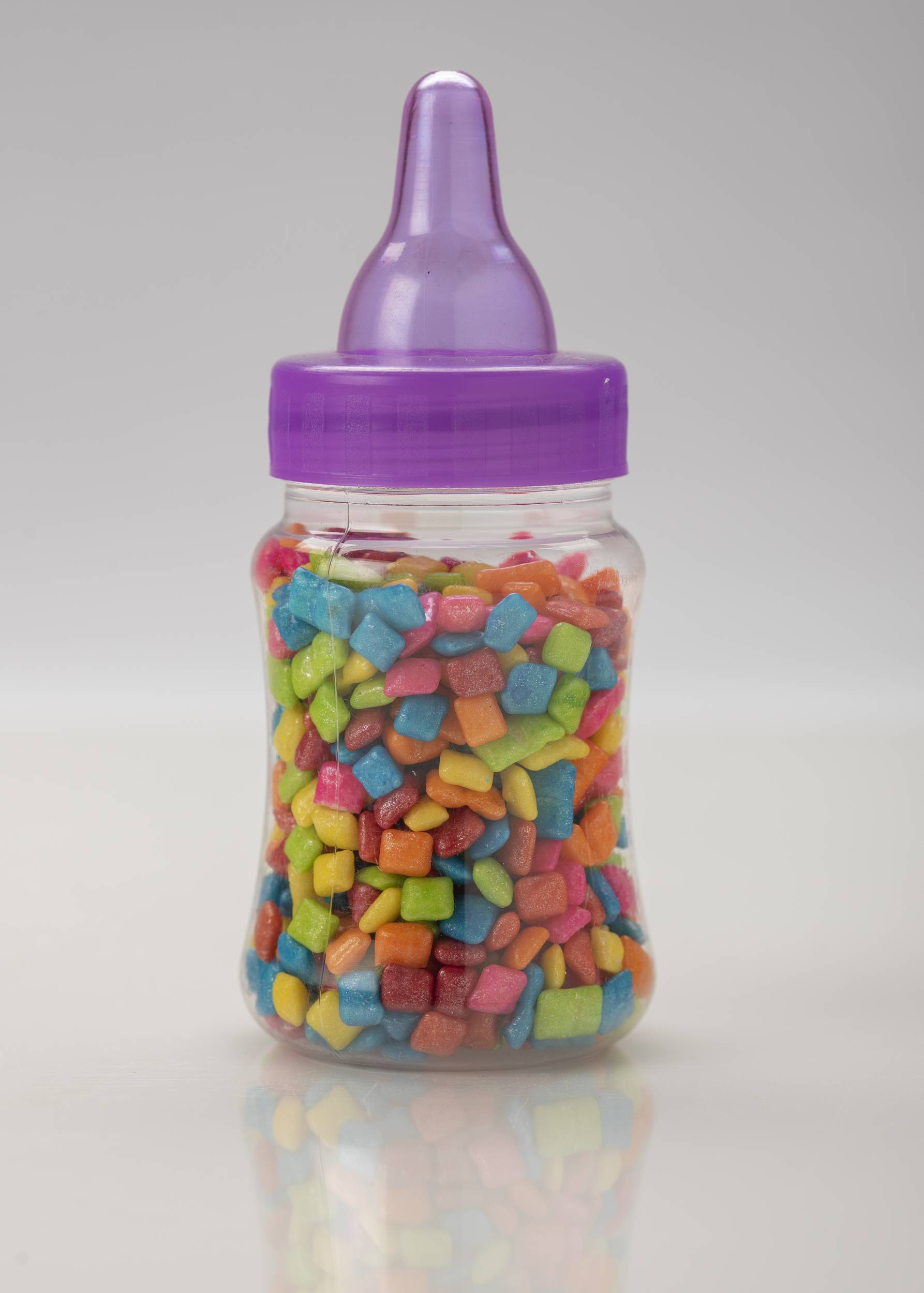 Suave y colorida goma de mascar confitada de sabores en forma de cuadritos pequeños.